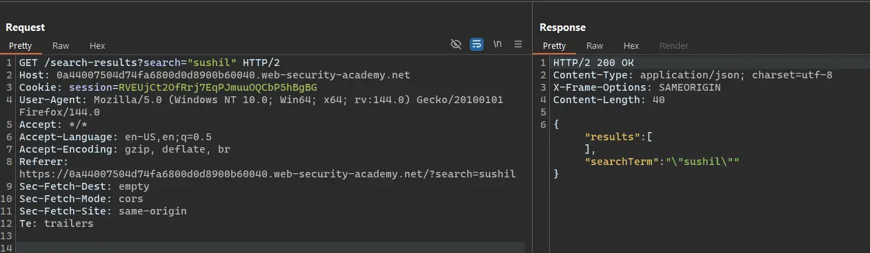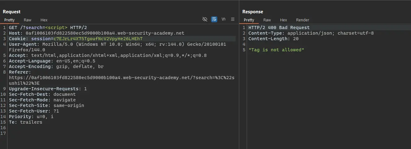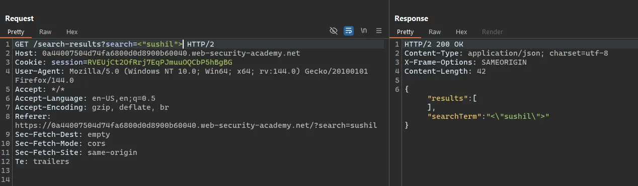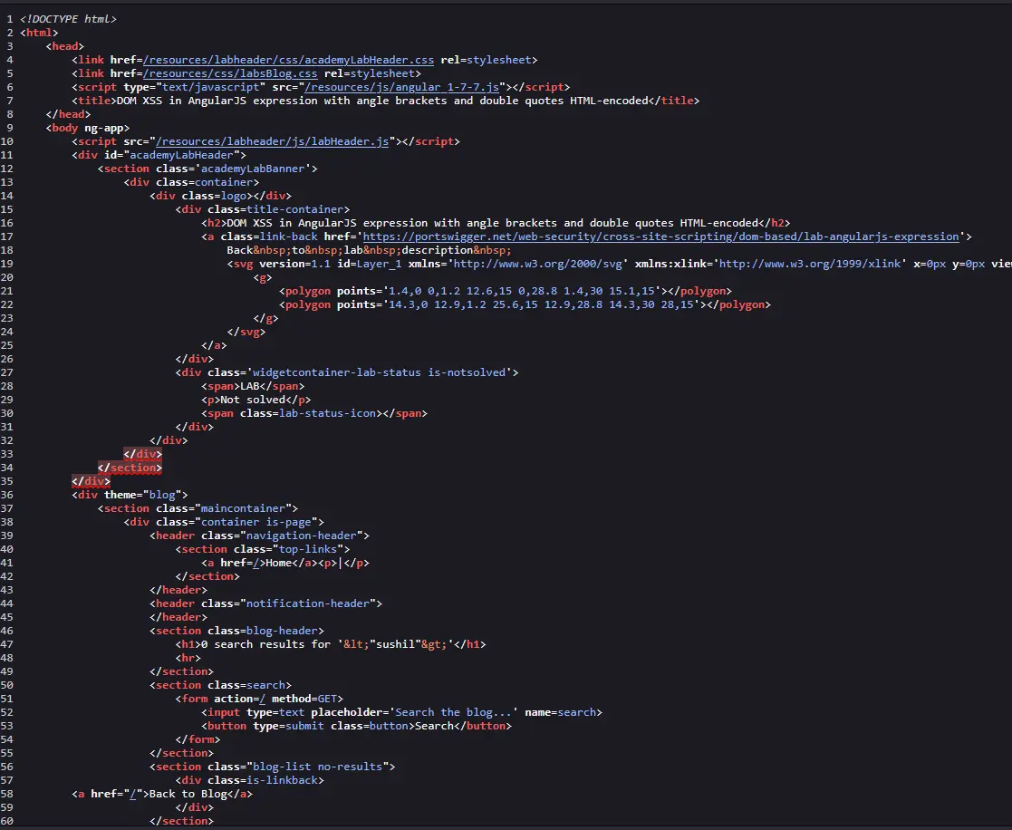 https://0a63001e04a7ce8981929d79001c00da.web-security-academy.net/?search=<sushil>