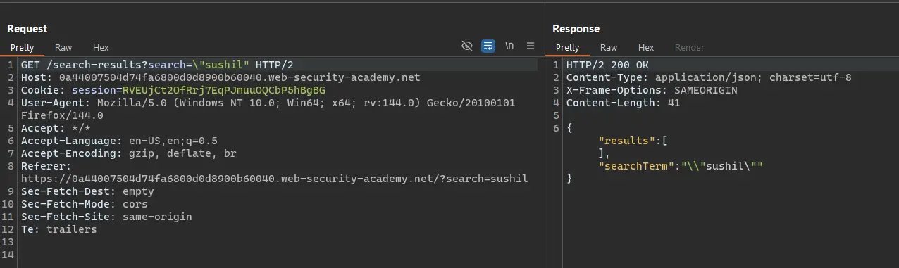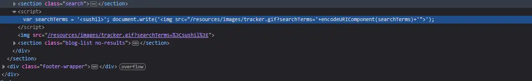 https://0a6c00260467044d85d8ea36004700cc.web-security-academy.net/?search=<sushil>