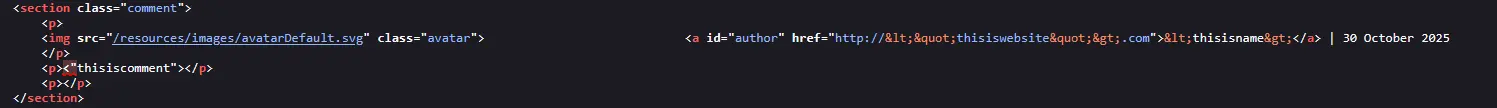 <img src="/resources/images/avatarDefault.svg" class="avatar"> <thisisname> | 29 October 2025