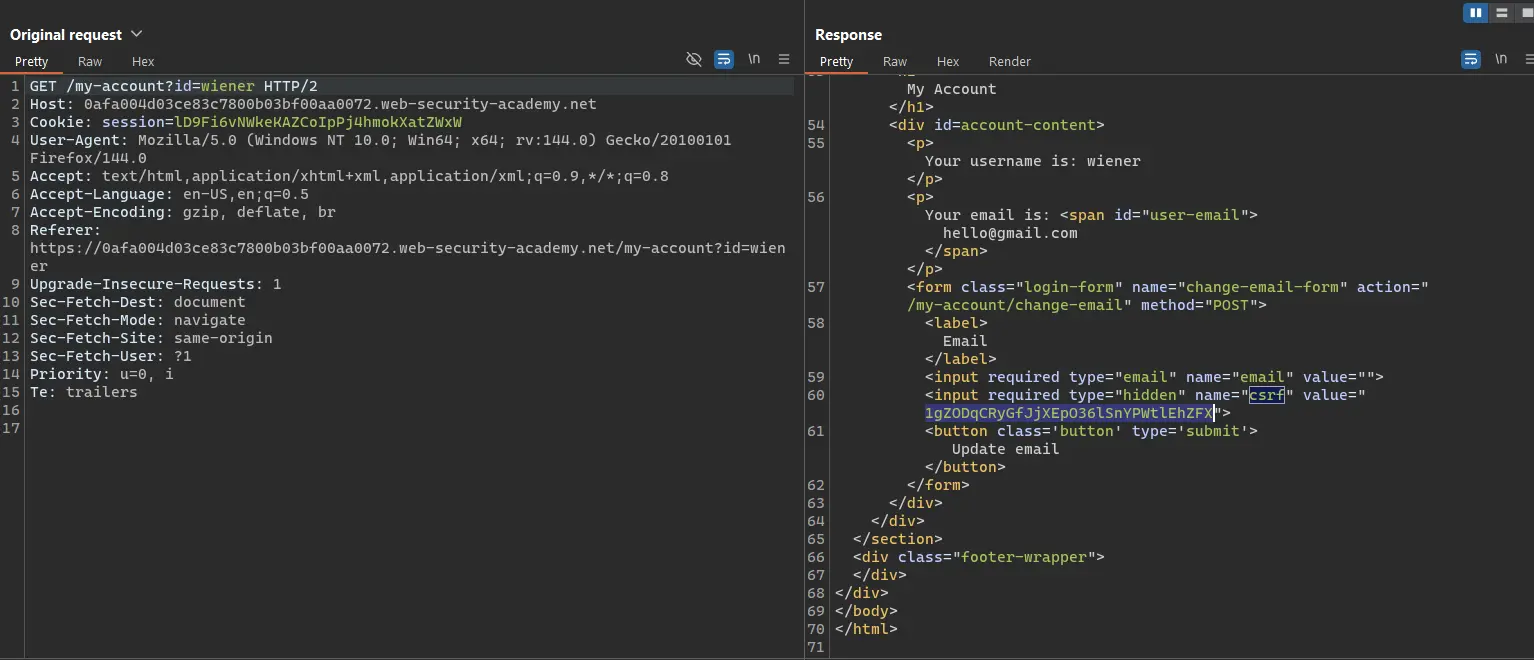 https://0ae3004703c86175806d0322003000b0.web-security-academy.net/my-account?id=wiener