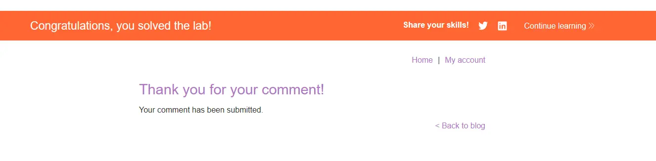To solve this lab, submit a comment that calls the alert function when the blog post is viewed.