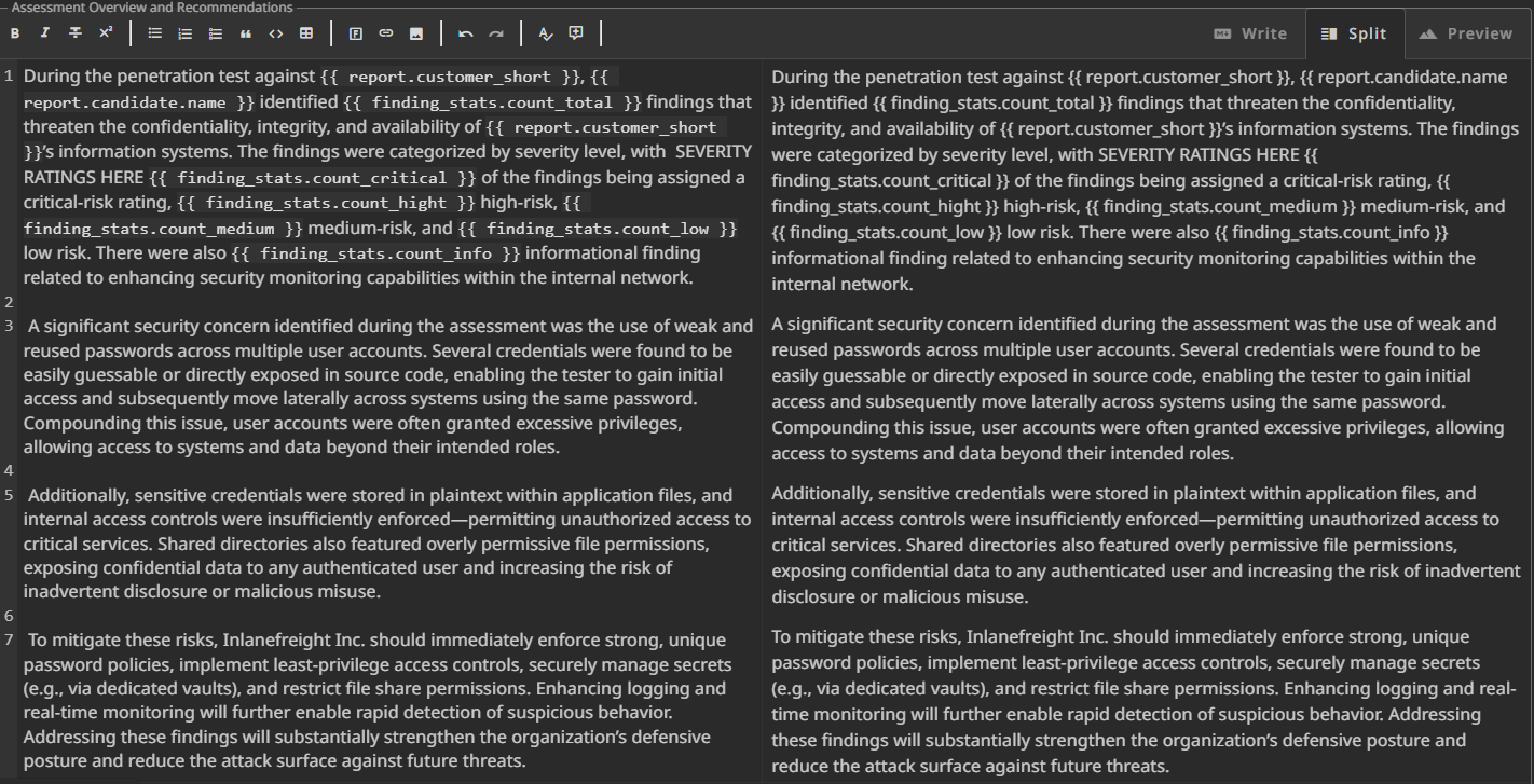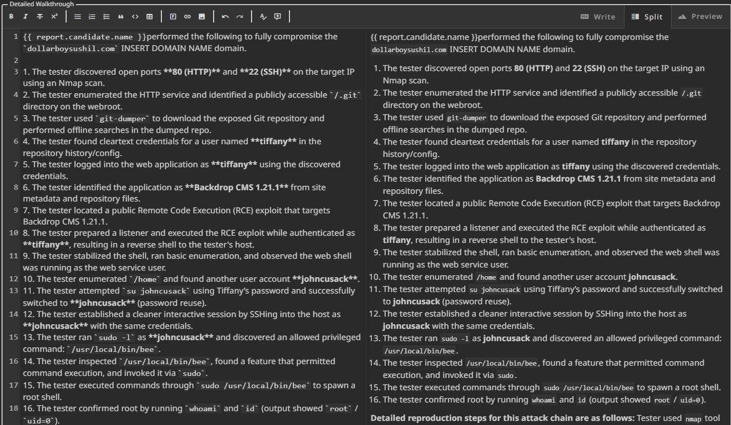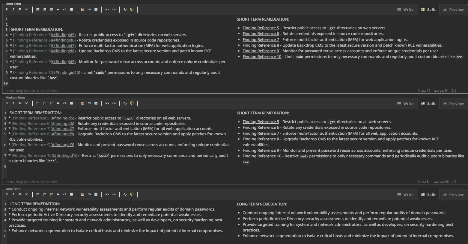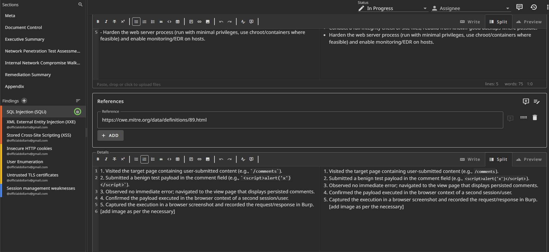 section is a critical part of the report. It provides an opportunity to showcase the work performed, illustrate the potential risks to the client’s environment, furnish technical teams with the evidence needed to validate and reproduce issues, and offer actionable remediation guidance.
